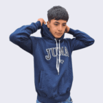 Sudadera unisex en Franela reactiva 20/1, azul marino profundo, cómoda y versátil para estilos sport-casual y urbanos. Logo JUMA discreto, capucha ajustable y bolsillo canguro funcional. Fit regular que permite libertad de movimiento y rib elástico en puños y basta para mayor durabilidad.