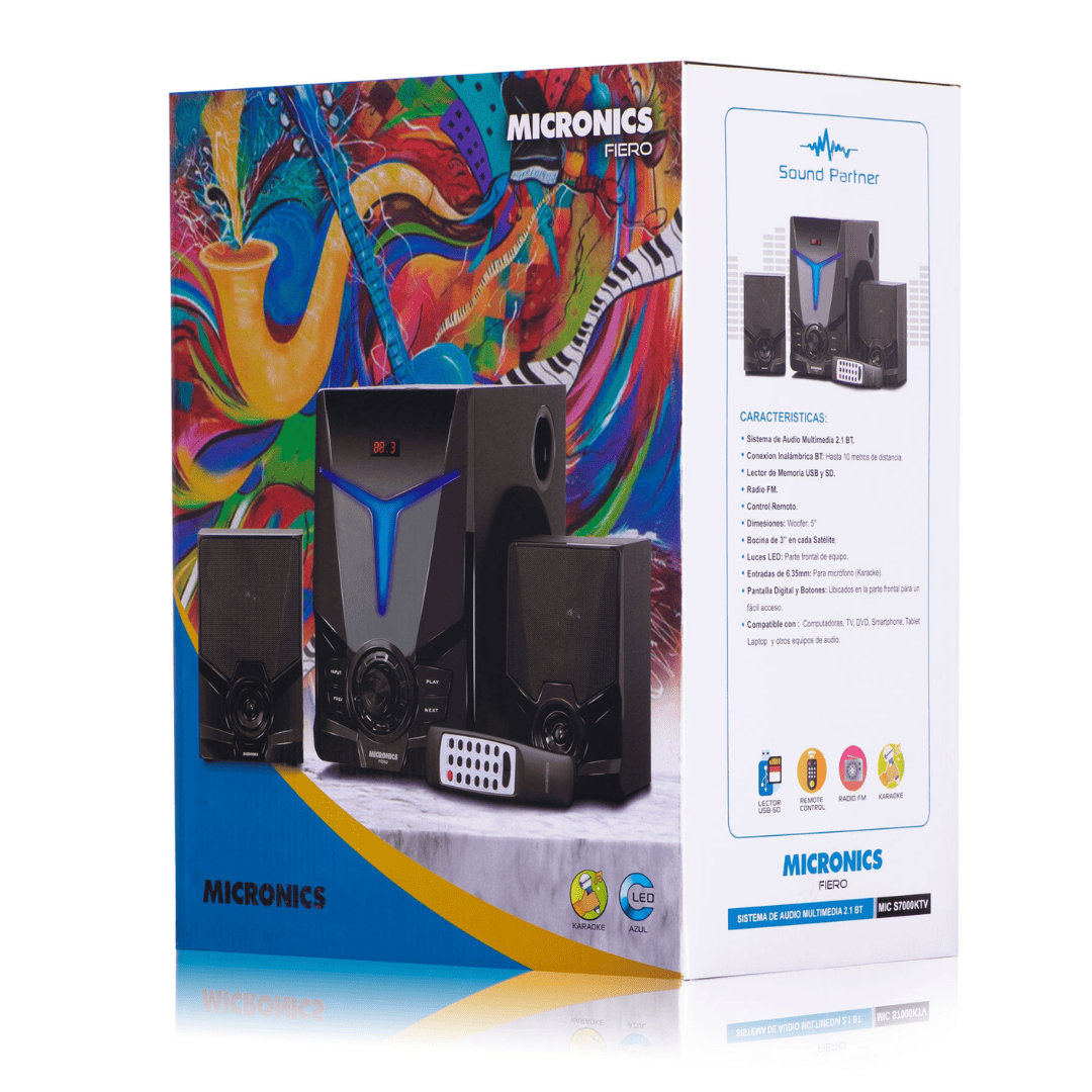 Disfruta de tu música y karaoke con el Parlante Fiero MIC S7000KTV, un sistema de audio multimedia 2.1 potente y versátil. Equipado con iluminación LED, conectividad Bluetooth y múltiples entradas para reproducir tu música desde cualquier dispositivo. Ideal para fiestas, reuniones o entretenimiento en casa.